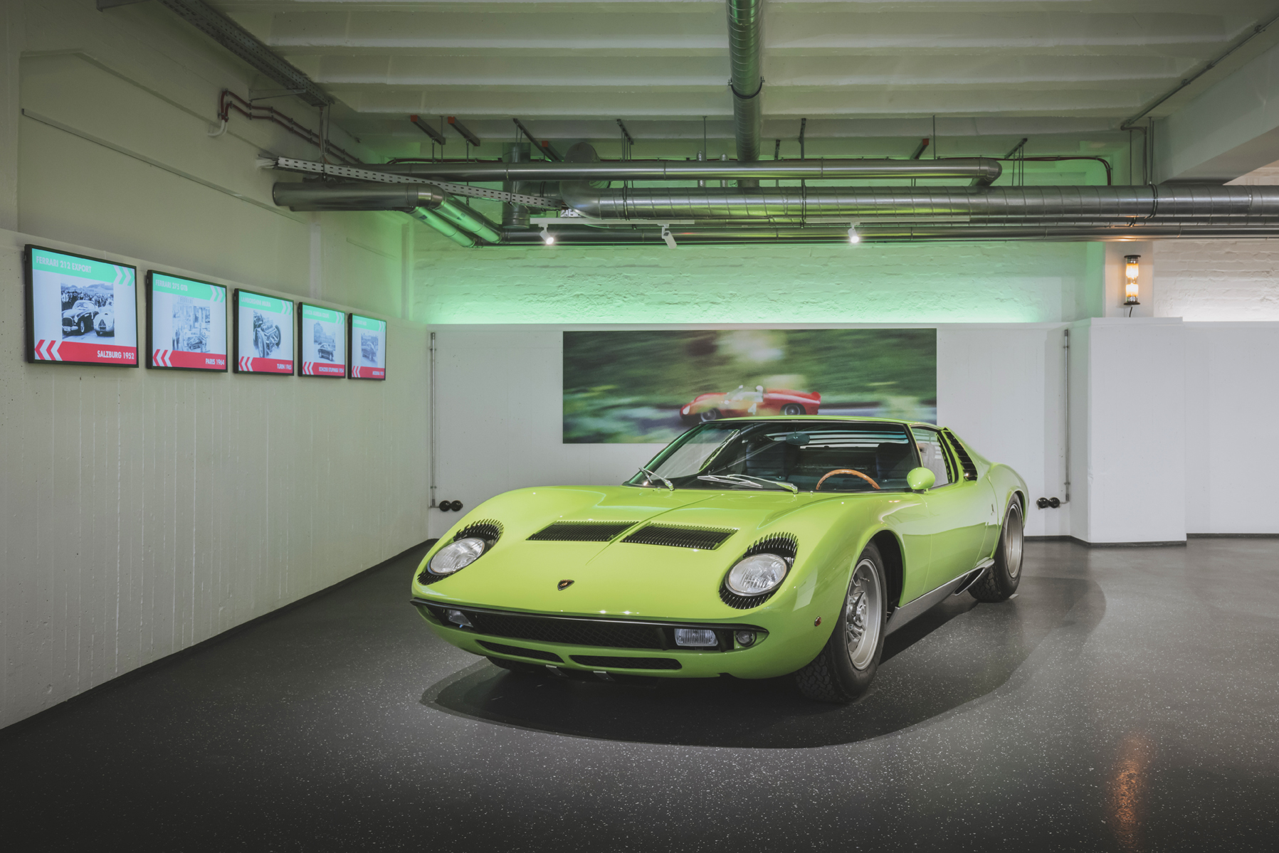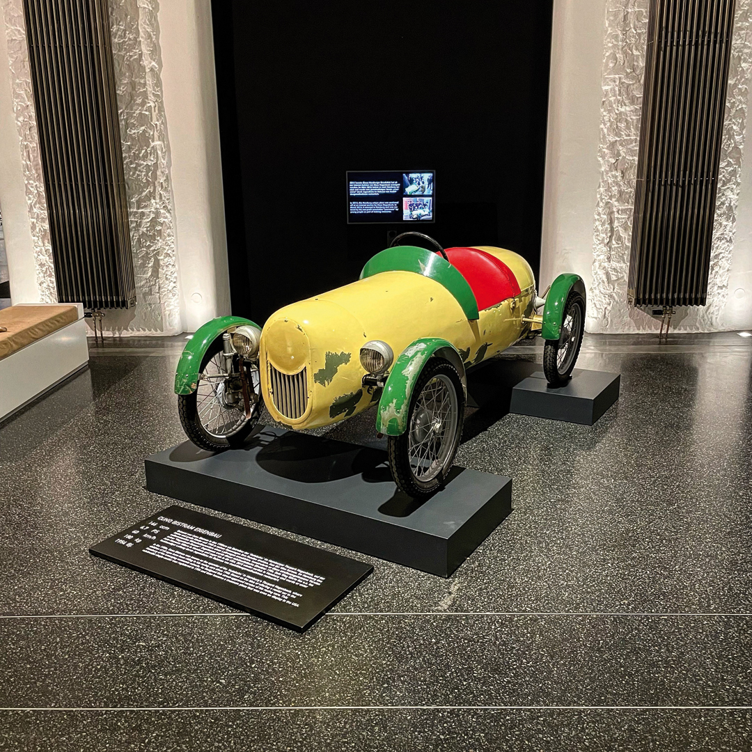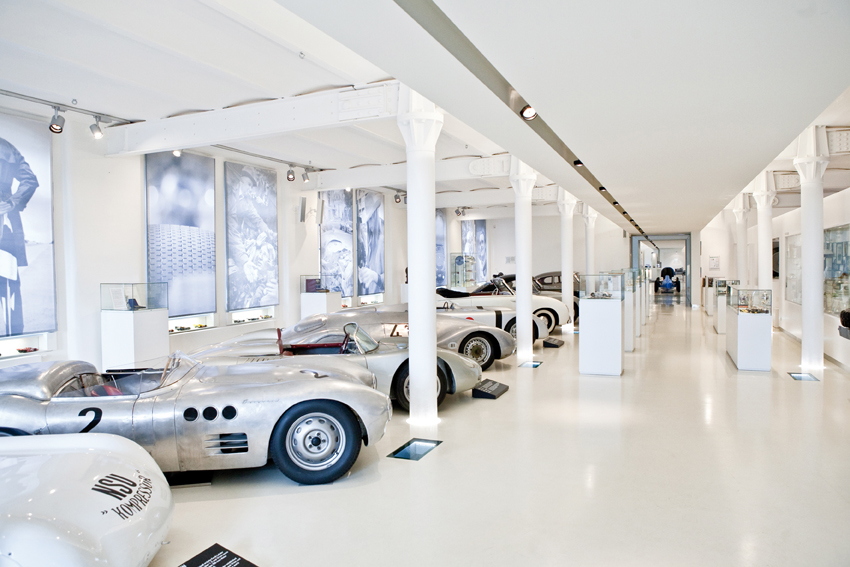Die Ausstellung erstreckt sich über drei Ebenen mit einer Fläche von 2500 m² und umfasst etwa 55 Automobile, Motoren und Modelle, hauptsächlich aus den 40er-, 50er- und 60er-Jahren, sowie moderne Exponate wie den Prototyp für Audis Le-Mans-Fahrzeuge ab 1999 und Michael Schumachers erster Formel-1-Rennwagen.